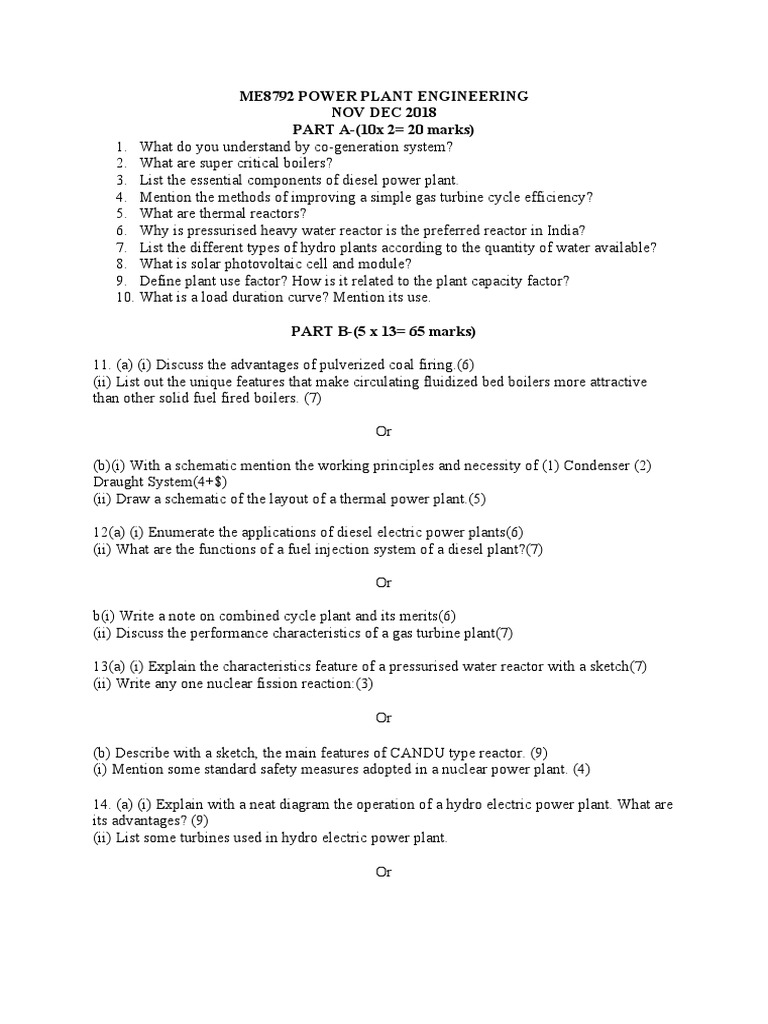 Me8792 Power Plant Engineering Nov Dec 2018 Part A 10x 2 20 Marks Power Station Nuclear Power